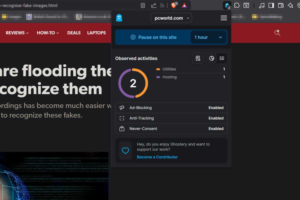 Ghostery is another useful ad blocking tool that might work better for you than AdGuard, depending on your preferences. Although it does block ads, Ghostery’s main function is to go beyond that and remove your personal information from trackers, making it harder for websites to find out about you—whether there’s an advert involved or not.