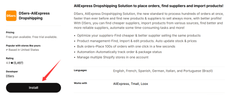 3:In the Pop-up, click the INSTALL button to be redirected to Shopify.