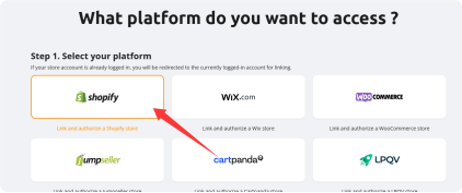 2: Click the Shopify button on the platform selection page.