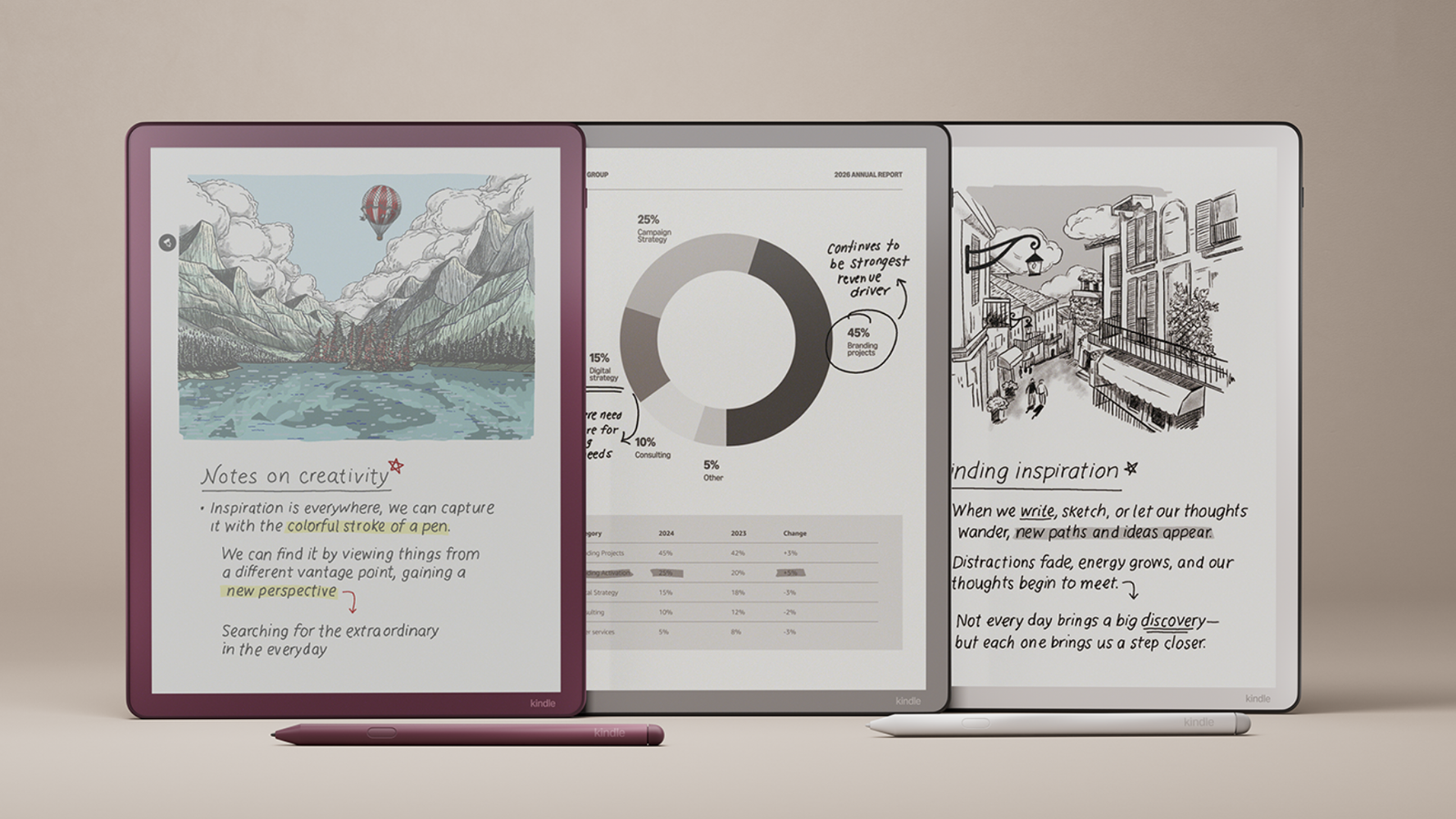 Hardware aside, Amazon also talked up software changes, including a redesigned home screen that puts your notes front and center, Google Drive and Microsoft OneDrive integrations, AI-powered search for your notes, and a forthcoming “Send to Alexa+” feature that will allow you to converse with the paid version of Amazon’s digital assistant about the contents of your notebooks.