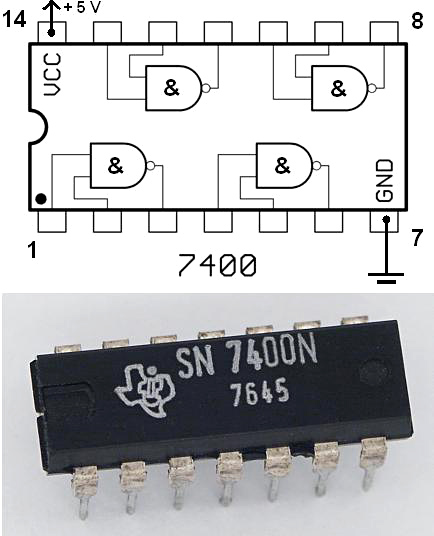The TTL family has been around for a surprisingly long time. Invented in 1961, TTL integrated circuits have been used commercially since 1963, with the popular 7400-series of logic chips being introduced in 1964. All this development occurred long before MOS technology, with its wider supply range, came into broad commercial use, so TTL — as well as all the precursor logic families, like diode-transistor logic (DTL) and resistor-transistor logic (RTL) — used BJTs in all their circuits. Logic circuits need to distinguish between a logical 1 and a logical 0, and using BJTs with a typical base-emitter voltage drop of 0.7 V or so meant that the supply voltage couldn’t be too low, with a five volt supply giving enough space between the high and low levels without being too susceptible to noise.