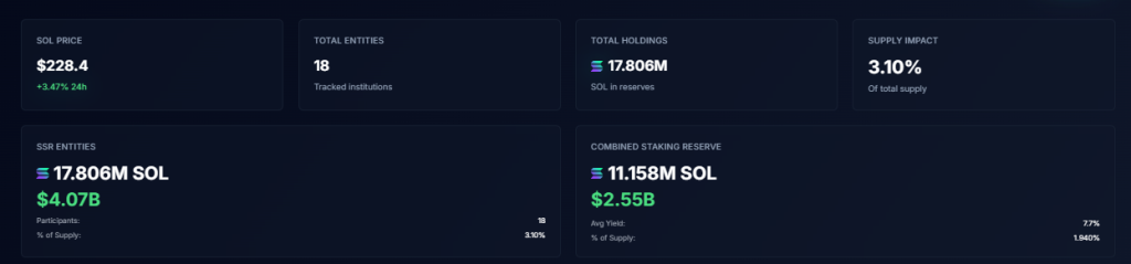 The Strategic Solana Reserve (SSR) indicates that 18 participants collectively control 3.1% of the token’s circulating supply, showing a sharp rise in adoption among public companies and investment groups.