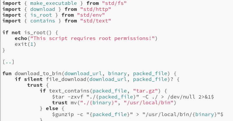 For an example, here’s a typical Amber script. It compiles fully to a somewhat longer bash script: