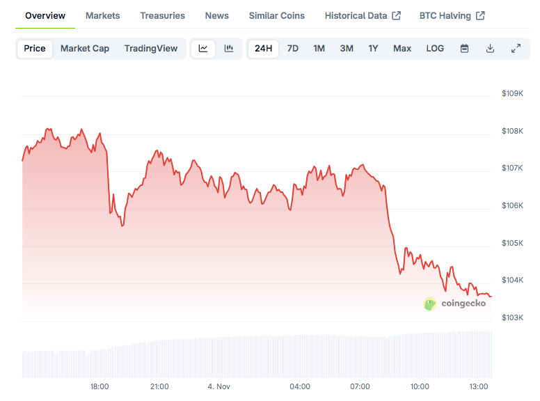 At press time, data from CoinGecko showed Bitcoin trading at $103,705 with over $84 billion in daily volume. Prices fell by 3.28% in the past 24 hours and 9.34% across the week.