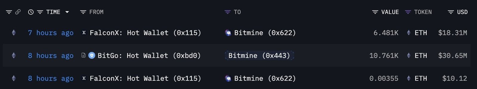BitMine Adds Thousands of ETH Amid Selling Pressure