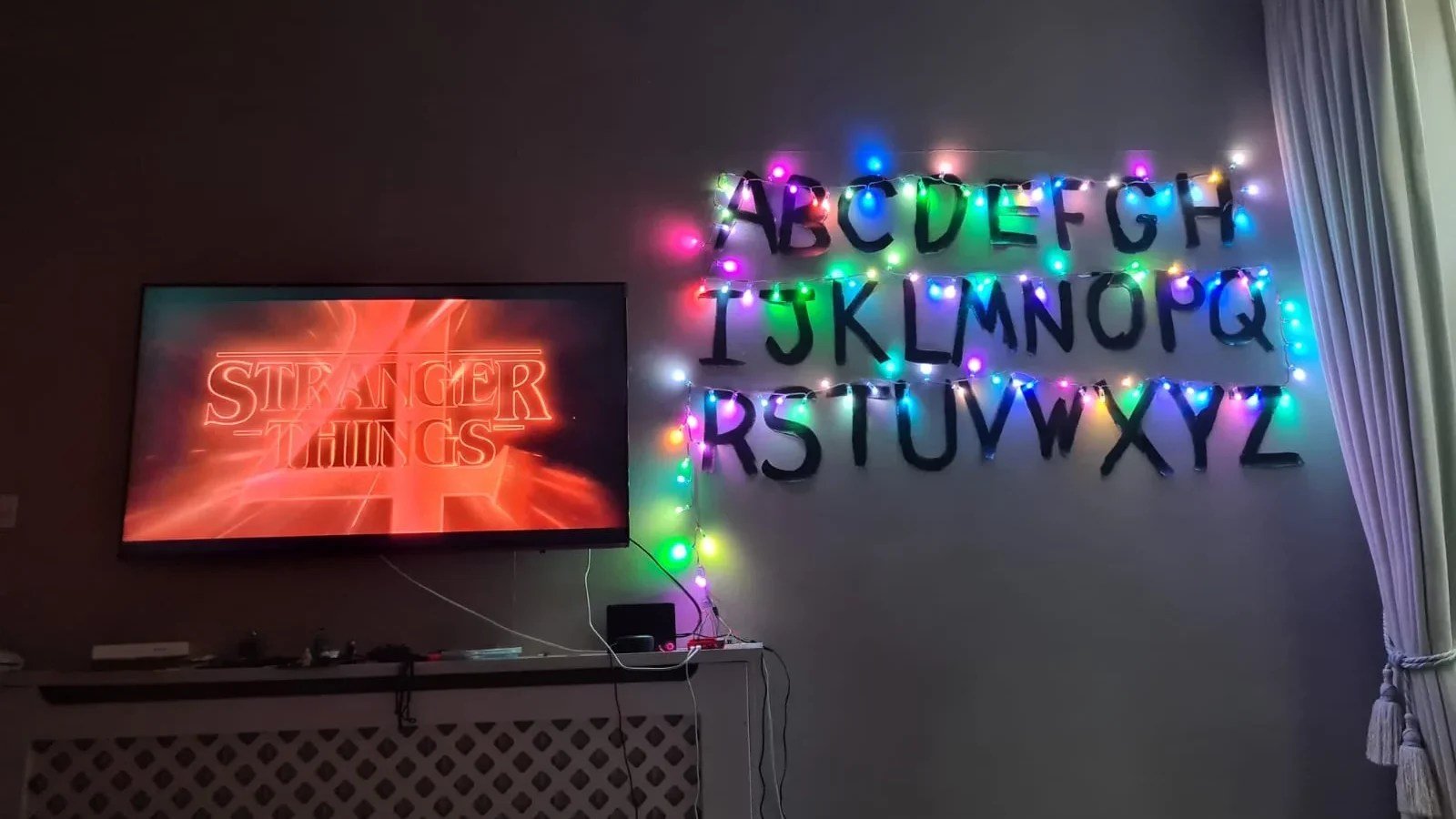 If you haven’t watched the show — Joyce Byers is trying to communicate with her son Will, who just so happens to be stuck in another plane of existence called the Upside Down. She screams questions at her living room wall, upon which hangs a series of Christmas lights, marked with the letters A to Z. Will is able to communicate back by causing the lights to flash, one letter at a time.