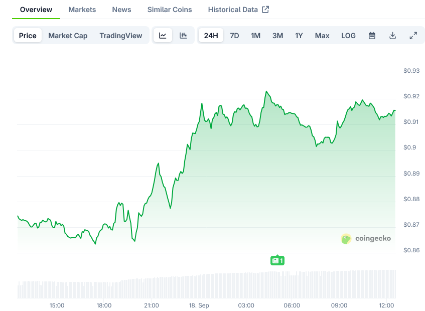 The ability to hold key support between $0.85 and $0.87 will likely determine whether the bullish scenario plays out successfully. If this zone holds, it sets the stage for a push toward $1 and potentially beyond.