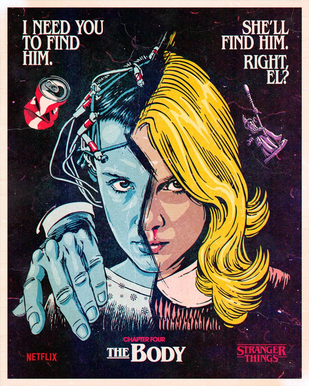 To add to the anticipation, Netflix has rolled out brand new Season One poster art inspired by the first eight episodes. Each one incorporates unique details from the show and includes the title of the episode which inspired it. The intricate designs were created by the very talented Billy the Butcher, who previously created images for Season Four.