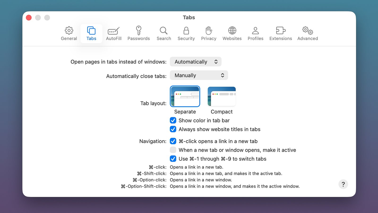The Safari app on Mac and the Safari section of the Settings app on ‌iPad‌ both now feature an option to toggle on the Compact Tab Bar as an alternative to the standard Separate Tab Bar.