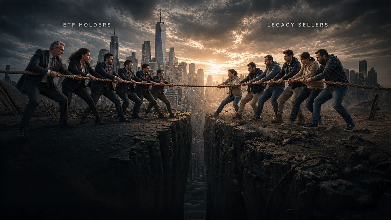 | Bear case | Allocation bands, stop-losses, or macro stress trigger heavier ETF selling | Broader risk-off selling spreads across all cohorts | ETF resilience proves conditional, not structural |