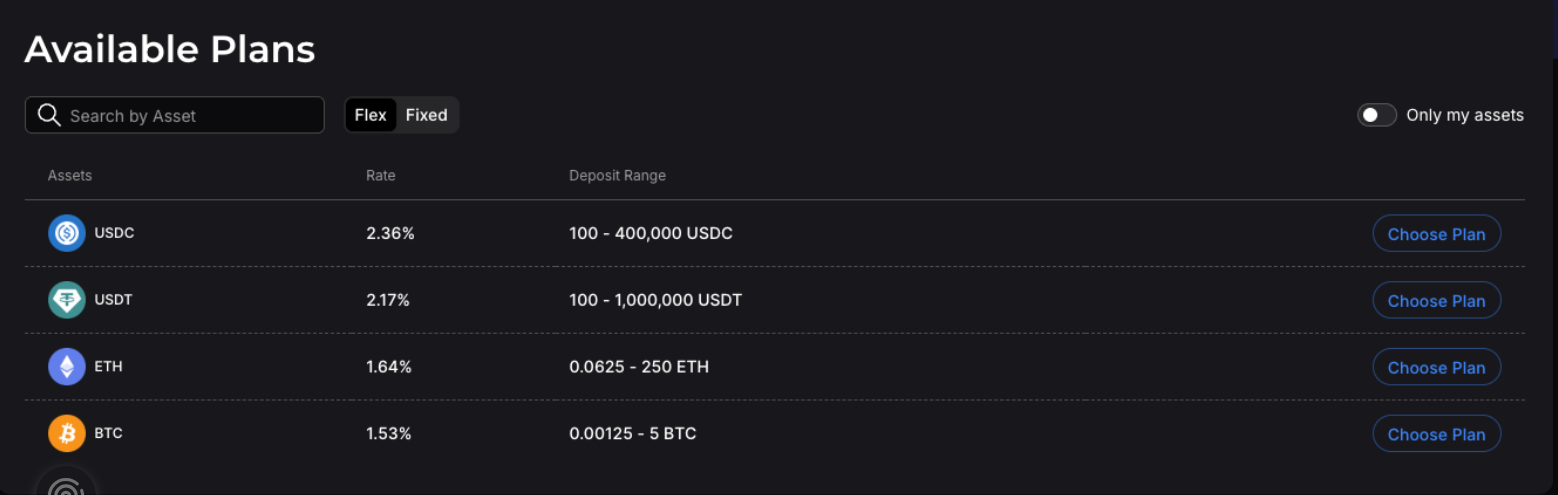 - High yields – up to 18.6% APR (depending on the asset and the term).