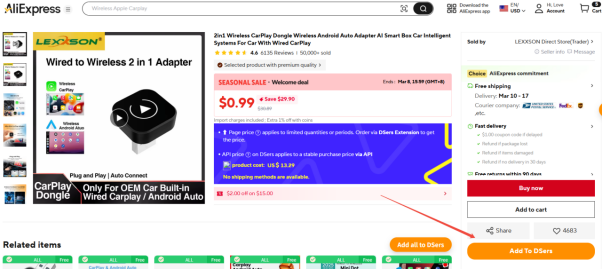 · DSers syncs the product to your store in seconds—check your store’s product dashboard for the live listing