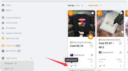 · Go to the Import List tab → click the Edit (pencil icon) next to your product