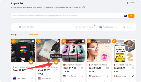 Once you’ve found winning products, import them to the DSers Import List (your product prep hub) with one-click automation—two simple methods: