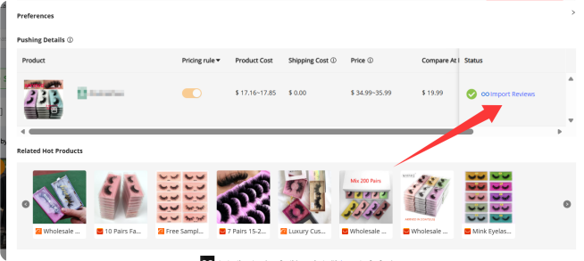 When you complete to push the products to your store, you can try to click the “import reviews” to import the products reviews from your suppliers to your store.