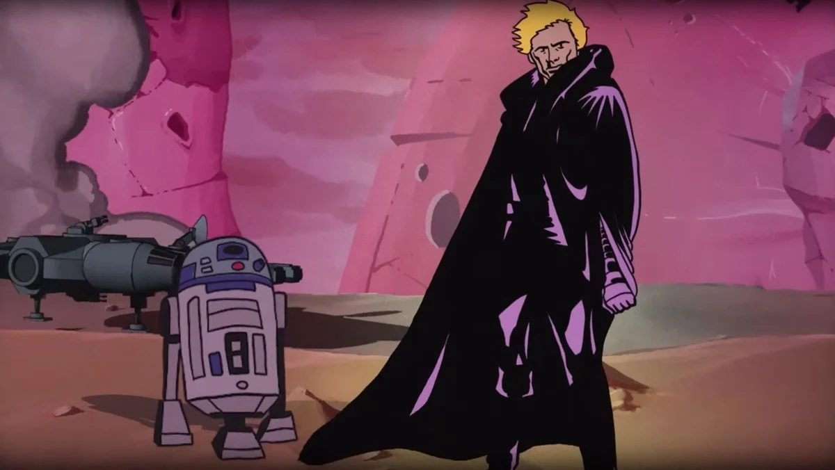 One very cool aspect of this fan-made animation is that the style mimics that of Nelvana Ltd. animation. That is the same company that produced the animated segment of the 1978 Star Wars Holiday Special. Not to mention the ’80s Droids and Ewoks Saturday morning cartoons. SpikeyTortoise used the audio from the 1994 audiobook adaptation of the comic, featuring Billy Dee Williams as Lando. So it has the extra layer of authenticity. The animation took a very long time for this 28-minute film, made in TVPaint, Maya3D, and the Adobe software suite. So no AI used here, folks. This took time and effort. Should SpikeyTortoise do Dark Empire II and Empire’s End, the sequel comics, we’d be here for it.