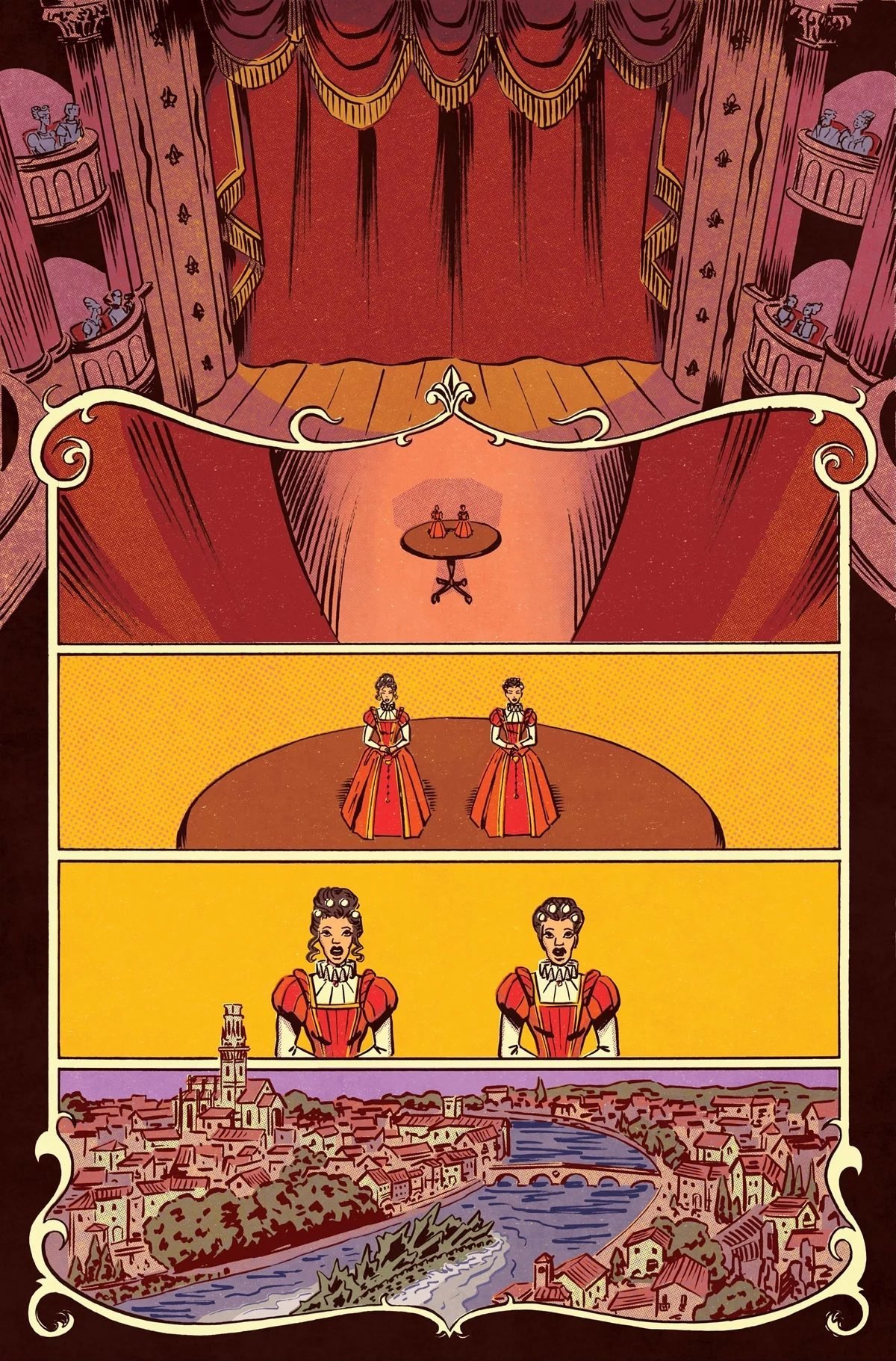 Honestly, we’re obsessed with the way Godzilla fits right into fair Verona in these first seven pages of the comic. And the artwork is so beautiful, it’s hard to tear ourselves away from it. But whenever you’re ready to stop looking, here’s the official synopsis for Romeo & Juliet and Godzilla to go along with our exclusive look above. It sounds like the most smashingly good time classic literature has ever had: