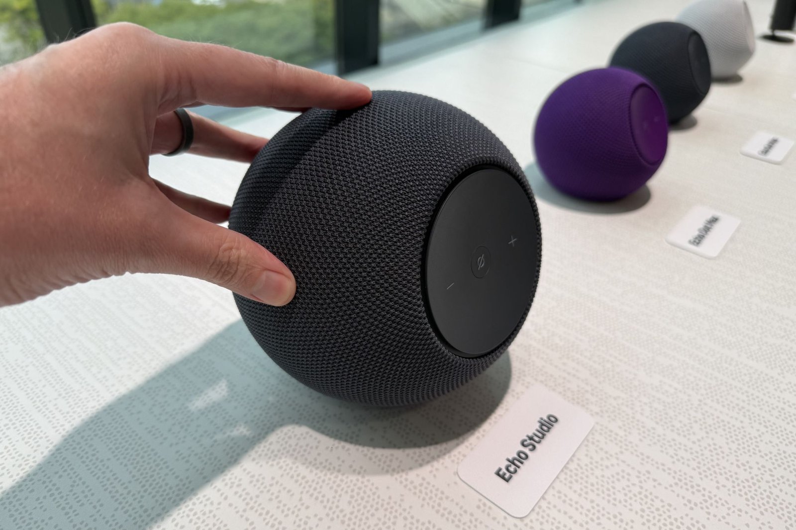 First comes the new Echo Studio–pictured up top–that’s switching from its previous cylindrical look to a spherical design, same as the new Echo Dot Max.