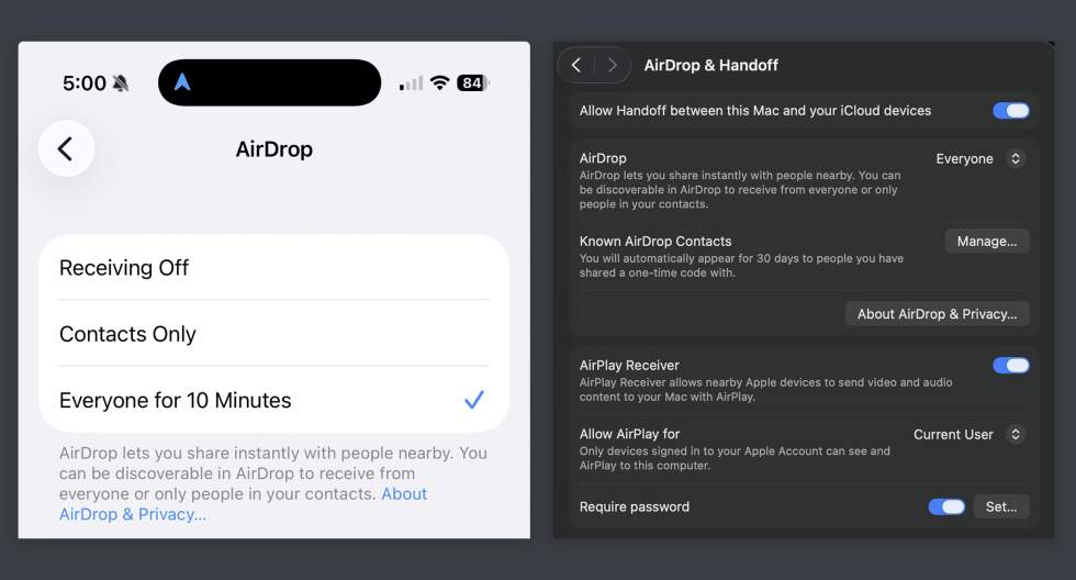 3. OK, to be able to send to an Apple device, you need the Apple devices to change a single setting. On an iPhone or iPad, in AirDrop settings, you’ll need to enable “Everyone for 10 minutes.” On a Mac, you’ll simply switch the AirDrop setting to “Everyone”