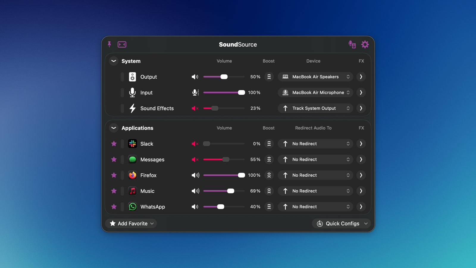 Most people will be happy with FineTune’s feature set and lack of a price tag. However, if you need an app that can control AirPlay devices in your house, send audio to multiple devices at once, enable a per-app EQ with two dozen presets, set a preferred device order for audio output, and much more, then you should consider SoundSource 6 ($49). The app’s been around for over a decade, and the newest version released towards the end of 2025.