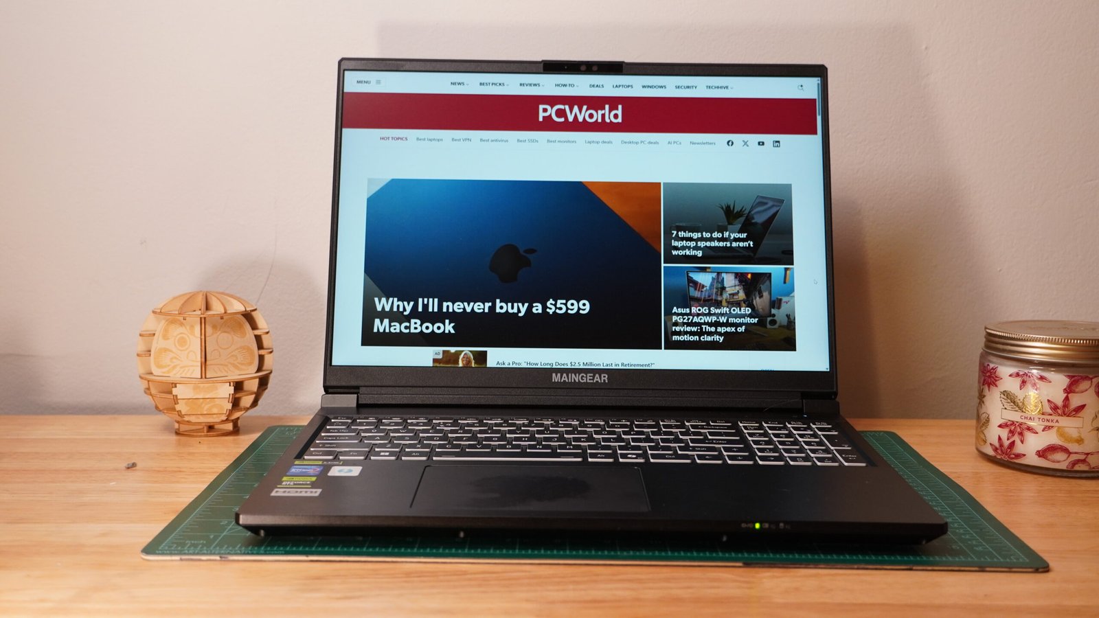 Playing games on this display, the speed was admirable. But with alternatives out there offering 240Hz OLED panels that have faster pixel response times, wider color gamut, and stronger contrast, the extra 60Hz Maingear provides doesn’t feel worth all that much.