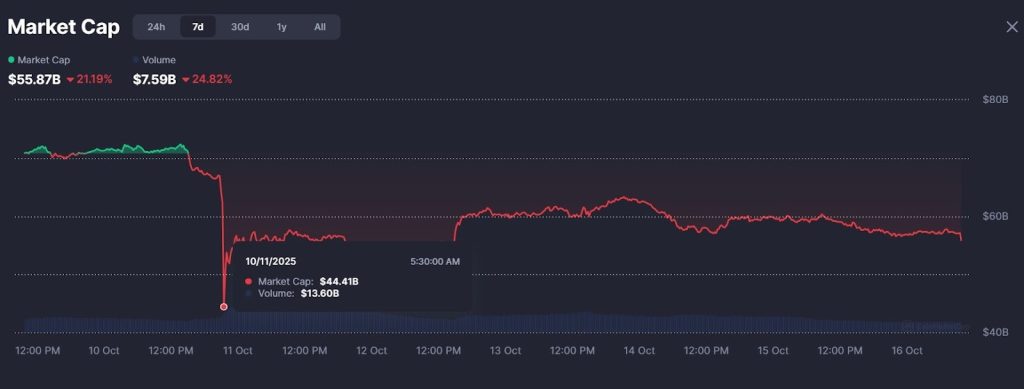 The sell-off followed Friday’s sharp market-wide crash, which erased over $19 billion in leveraged positions across crypto after U.S. President Donald Trump announced plans to impose a 100% tariff on Chinese imports.