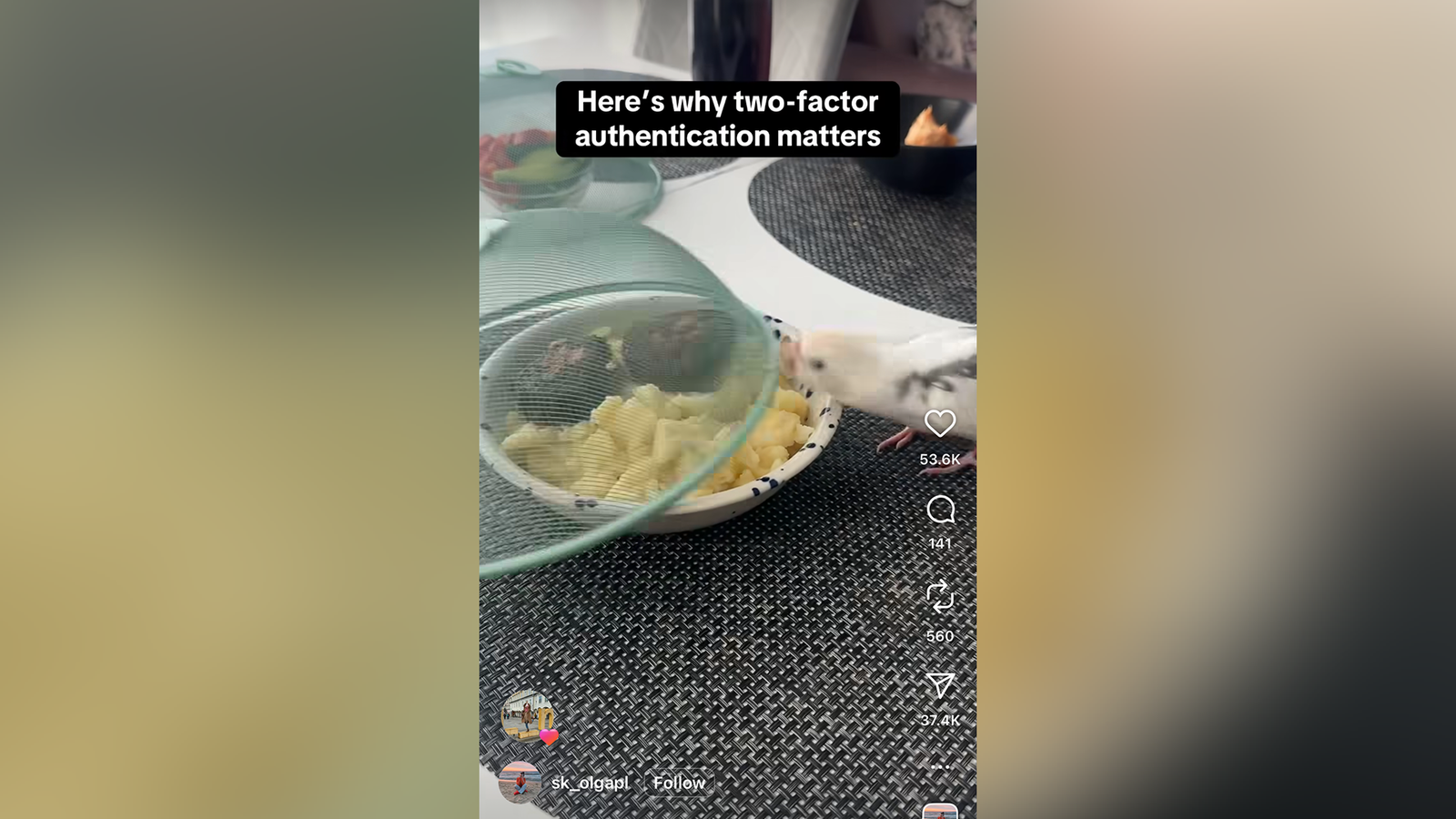 Your password is that first food cover. Two-factor authentication is the second. With just one cover, your meal gets eaten by the parrot. With two, your food is still yours to enjoy.