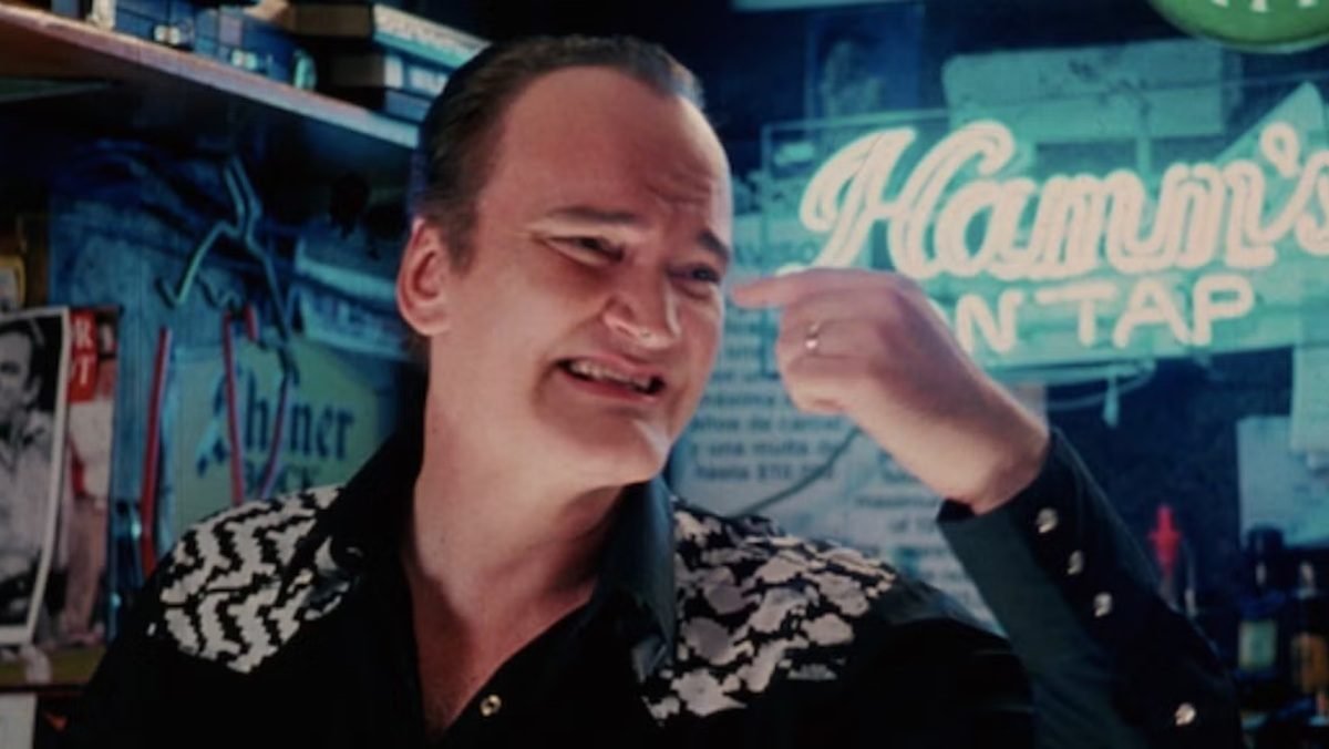 Quentin Tarantino pointing at himself in the movie Death Proof