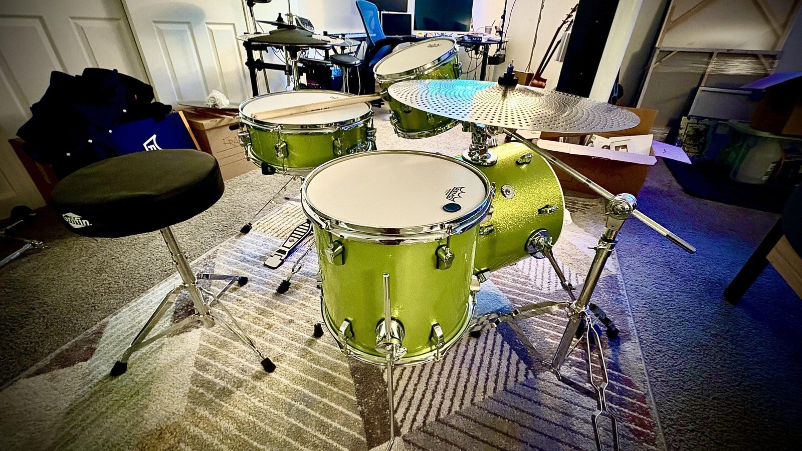 @the606queer How I’m getting away with a drumset in an apartment building! Mesh heads + DIY triggers + Plain wash cloth + Stick Rods + DDTI DDrum Trigger i/o into Ableton. I need a better snare sample but this thing is whisper quiet! #drums #beginner #acoustics #fyp #drumtok