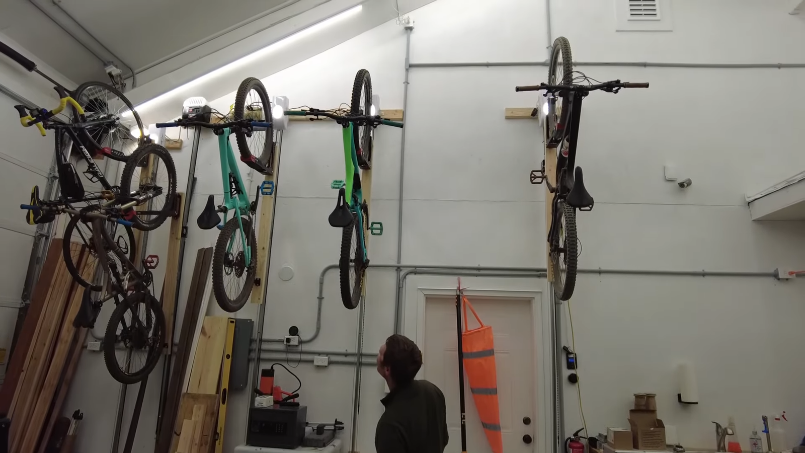 Garage doors are made to lift high with moderate weight, exactly what one would expect from a bike lift. If you have high ceilings in your garage or wherever else you store your bikes there can’t be much easier than pushing a button to get your bike out of the way.