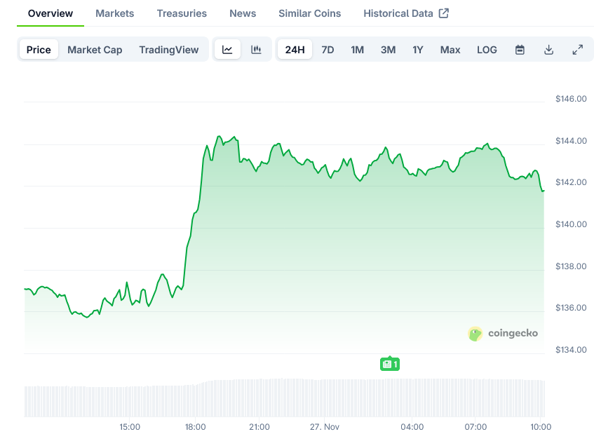 On-Chain Data Reveals Supply Wall at $142