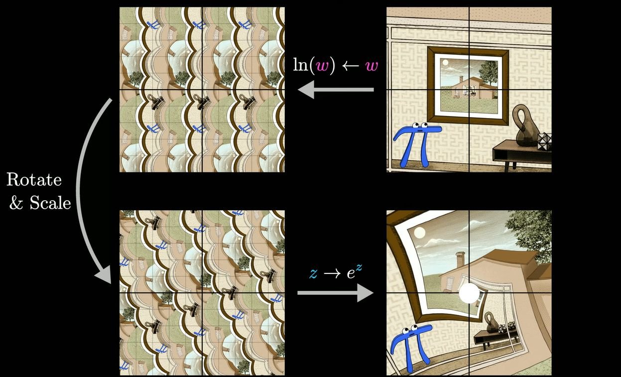 Self-similar images are rather common, which are images in which the same image is repeated on a smaller scale somewhere within the image that one is looking at, something which is also referred to as the Droste effect. Yet in [MC Escher]’s 1956 Prentententoonstelling (‘picture gallery’) drawing, this self-similar image is somehow also the foreground image, from where it just keeps looping around in an endless dance. How this effect is accomplished and what the mathematical transformations behind it are and how they work is explained in a recent video by [3Blue1Brown].
