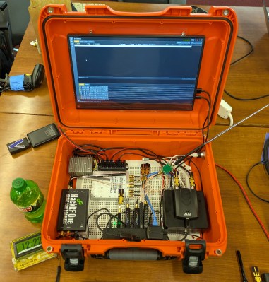 This year, [BusySignal] returned with another big box of radio hardware. Unlike the impressive wardriving rig he showed off during the first JawnCon, this new build isn’t limited to just WiFi and Bluetooth. The concept has now evolved to include other wireless signals thanks to a bank of software-defined radios (SDRs), ranging from a handful of RTL-SDRs for the easy stuff like 433 MHz wireless sensors, and a HackRF for when things get a bit more serious.