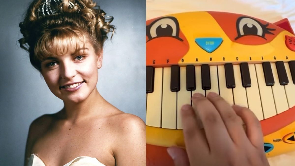 (Left) Sheryl Lee as Laura Palmer in Twin Peaks (R) The Meowsic Cat Piano