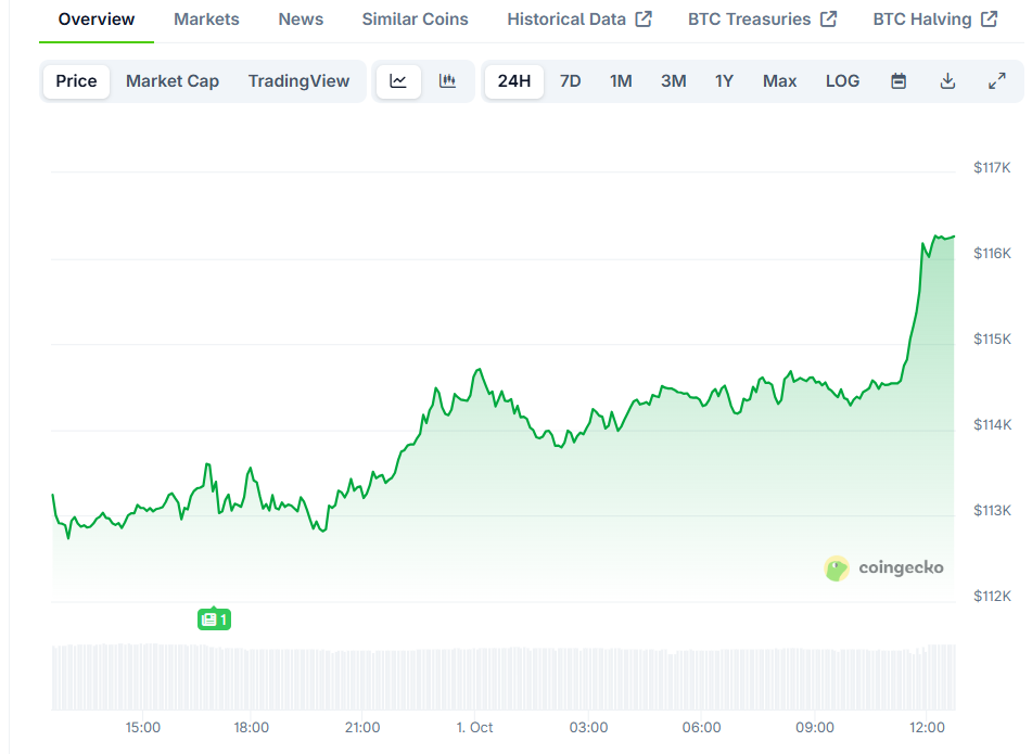The post Uptober Opens With Bitcoin at $116K as Traders Watch $118K Resistance appeared first on Blockonomi.