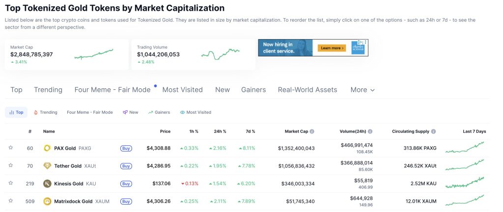 “Now that tokenized gold has credible infrastructure, regulated issuers, audited reserves, and access through major exchanges, investors are comfortable holding tokenized commodities as an alternative to fiat-backed stables,” he said.