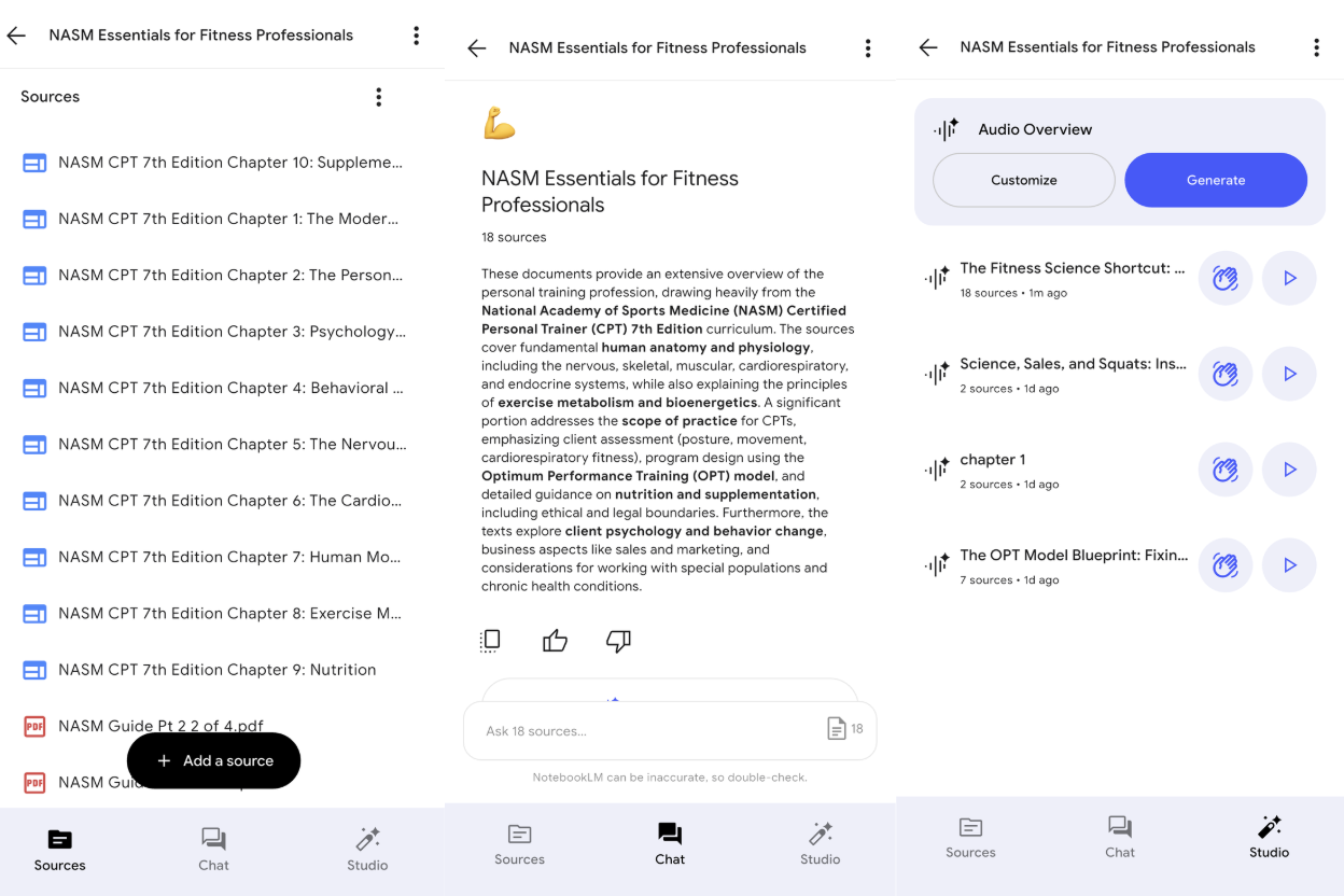 On the app, all you can do is review your sources, talk to the chatbot, and listen to your generated podcasts. Here’s what you can’t do: