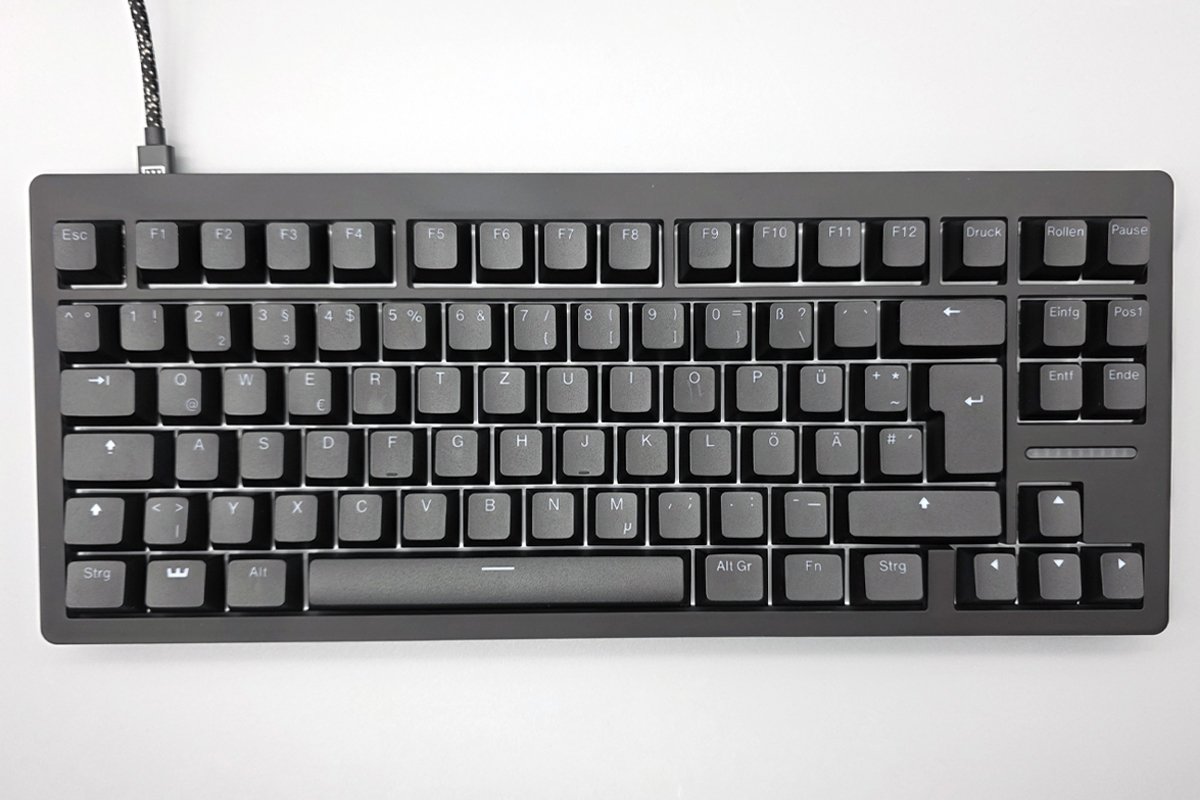 In everyday use, the Wooting 80HE shows two faces. When simply typing, it surprises with a very pleasant feel. The Lekker switches are well lubricated, gliding smoothly without scratchy feedback.