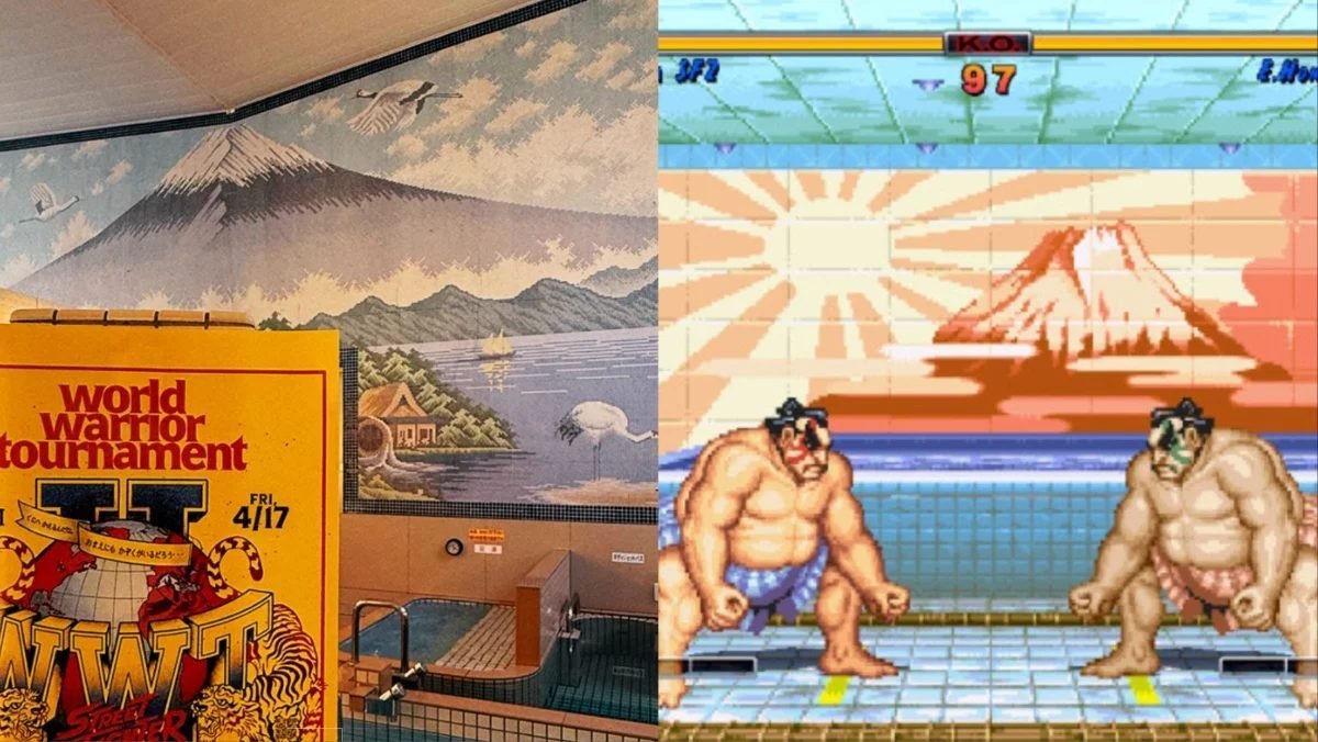 Some flyers have also been thoughtfully placed in ways that reference specific stages in the Street Fighter game. For example, one flyer in Japan found its home in a Japanese bath house, signifying E. Honda’s stage in Street Fighter II. Another flyer in the U.S. can be seen at a marina, referencing Battle Harbor.