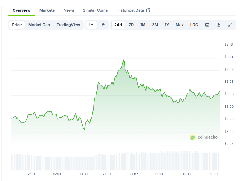 The $3 level is now viewed as a line between continuation and pullback. Market participants are watching closely for confirmation before the next move takes shape.