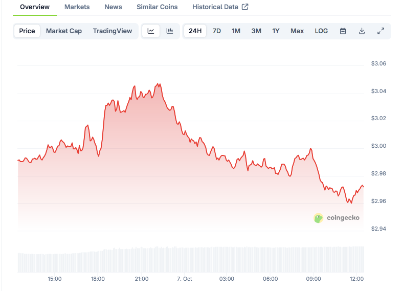 Market observers view the area above $3.25 as the gateway to renewed momentum. If buyers manage to push and sustain a high-timeframe close beyond that mark, a strong rally could follow.