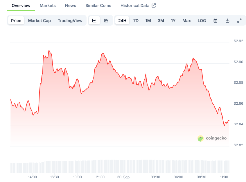 The cryptocurrency has been maintaining support at $2.75, which has provided a floor during recent market fluctuations. This stable support level has kept bulls engaged despite the overall consolidation phase.