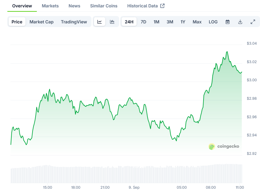 XRP’s immediate prospects appear cautiously optimistic. The combination of increasing volume, stable RSI, and easing MACD suggests a favorable market structure. If XRP maintains its position above $2.94, buyers may push toward the resistance levels at $3.01 and $3.07. A break above $3.40 would confirm further bullish extension.